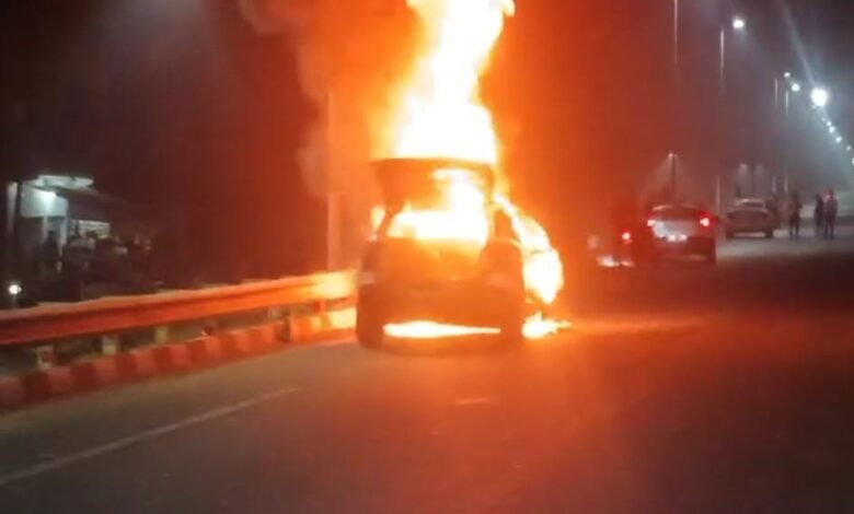 इटावा में चलती क्रेटा कार में लगी आग, हादसे में दो लोग बाल-बाल बचे, आगरा-कानपुर हाईवे पर गाड़ी पूरी जली