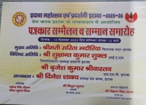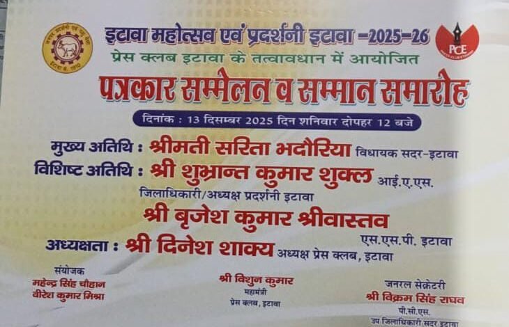 इटावा। प्रदर्शनी पंडाल में प्रेस क्लब इटावा के तत्वावधान में पत्रकार सम्मेलन एवं सम्मान समारोह का आयोजन कल 13 दिसम्बर दिन शनिवार को दोपहर 2 बजे होगा।