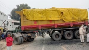 इकदिल। आगरा – कानपुर नेशनल हाईवे पर कोयले से लोड एक कंटेनर का आगे का टायर फटने से अनियंत्रित हो गया और डिवाइडर पार करके दूसरे लेन में खड़े ऑटो से टकरा जाने से हाइवे पर जाम लग गया। प्रांत बिहार जिला नवादा के गांव बड़ियार निवासी कंटेनर ड्राइवर ने बताया वह मिर्जापुर अनपरा से कंटेनर में कोयला लोड कर हरियाणा जा रहा था । तभी शनिवार दोपहर इकदिल इलाके बजरिया गली के पास पहुंचने पर तेज आबाज के साथ ड्राइवर साइड लगा आगे का टायर फट गया जिससे कंटेनर अनियंत्रित हो गया और डिवाइडर के ऊपर चढ़कर खड़े ऑटो से टकरा गया इतना नही उसे घसीटते हुए मिट्टी में धंस कर तिरछा हाइवे पर खड़ा होजाने से यातायात पूरी तरह बाधित हो गया। घटना के बाद कानपुर की ओर जाने वाले मार्ग पर वाहनों की लंबी कतार लग गई। देखते ही देखते करीब ढाई किलोमीटर तक जाम की स्थिति बन गई। जाम में फंसे यात्रियों को भारी परेशानी का सामना करना पड़ा। कई लोग काफी देर तक सड़क पर फंसे रहे। सूचना मिलते ही पुलिस मौके पर पहुंची और स्थिति को संभालने में जुट गई। पुलिस ने तत्काल छोटे वाहनों को कस्बा के रास्ते डायवर्ट कर निकाला, ताकि यातायात कुछ हद तक सुचारू किया जा सके। वहीं भारी वाहनों को रोक दिया गया। पुलिस कर्मियों ने कड़ी मशक्कत के बाद ऑटो को सड़क से हटवाया और कंटेनर को हटाने के लिए दो क्रेन मंगवाई जिसके बाद हाइवे से हटवाया और सड़क पर फैले कोयले को नेशनल हाईवे टीम ने हटाकर रास्ता साफ किया। वही ऑटो ड्राइवर घनश्याम ने बताया कि वह एक किनारे ऑटो खड़ा कर घर मे खाना खा रहा था तभी धड़ाम की तेज आबाज सुन घर से बाहर आया तो ऑटो क्षतिग्रस्त देख उसके होश उड़ गए । गनीमत रही कि हादसे में कोई बड़ा जान-माल का नुकसान नहीं हुआ। पुलिस का कहना है कि डंपर के टायर फटने के कारण यह हादसा हुआ। डंपर चालक से पूछताछ की जा रही है और यातायात व्यवस्था को पूरी तरह सामान्य कराया ।