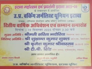 उ.प्र. वर्किंग जर्नलिस्ट यूनियन इटावा का द्वितीय वार्षिक अधिवेशन एवं सम्मान समारोह 19 दिसंबर को