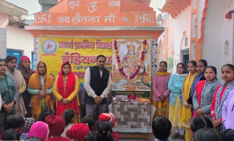 आदर्श स्कूल इकदिल में बसंत पंचमी मनायी गयी