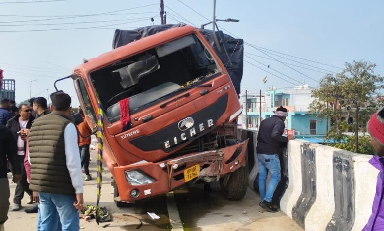 बकेवर मे ओवर ब्रिज पुल के ऊपर हुआ हादसा