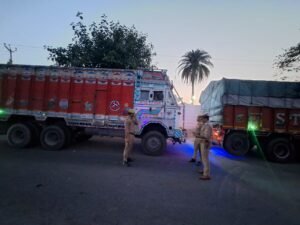 अभियान के दौरान कुल लगभग 110 वाहनों को चेक किया गया। जांच में नियमों का उल्लंघन पाए जाने पर पुलिस ने कड़ी कार्रवाई करते हुए 4 मोटरसाइकिलों को सीज कर दिया। वहीं 7 ट्रकों के खिलाफ नो पार्किंग और रॉन्ग साइड में खड़े होने पर चालान किया गया। इसके अलावा 21 अन्य दोपहिया और चारपहिया वाहनों के चालान किए गए। इस प्रकार कुल 32 वाहनों के विरुद्ध कार्रवाई करते हुए पुलिस ने 42,000 रुपये का समन शुल्क वसूला। थानाध्यक्ष नागेंद्र सिंह ने बताया कि चेकिंग अभियान का उद्देश्य लोगों को यातायात नियमों के प्रति जागरूक करना है। उन्होंने वाहन चालकों को सख्त हिदायत दी कि वाहन चलाते समय आवश्यक दस्तावेज साथ रखें और दोपहिया वाहन चलाते समय हेलमेट का अनिवार्य रूप से प्रयोग करें। पुलिस ने स्पष्ट किया कि आगे भी इस तरह के अभियान लगातार जारी रहेंगे और नियमों का उल्लंघन करने वालों के खिलाफ सख्त कार्रवाई की जाएगी।